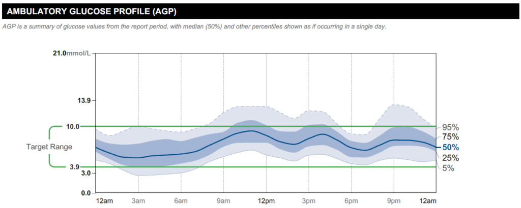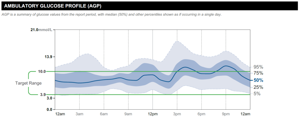 “Learning to understand your AGP can take time and practice. Your healthcare team is there to help you make sense of your data and can support you in learning carbohydrate counting or going over it again if needed”